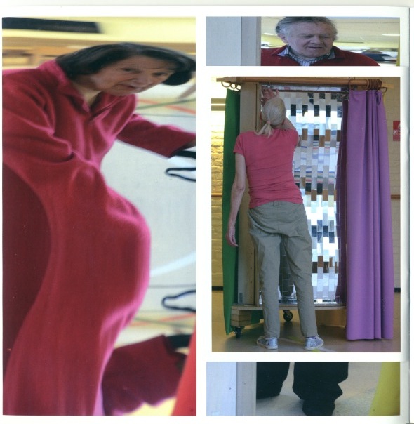 There is a strong interaction between mind and body. We all manipulate our own thoughts. It is often difficult to convince people who are very depressed to get up in the morning. This creates a downward spiral. That is why I wanted to stimulate these people’s minds and see if they would be able to open themselves up for something new. I developed a new route, consisting of short pieces of tape on the floor. This new route led to an installation of distorting mirrors. The curtains in front of the mirrors aroused the curiosity of the patients. The estrangement of their self-image made them reflect on the image and on themselves. They asked themselves if they could identify with the image they saw. In a positive way, the mirrors had a mind-opening effect. The installation brought the elderly people distraction and fun and succeeded in getting them to move around, both physically and mentally.