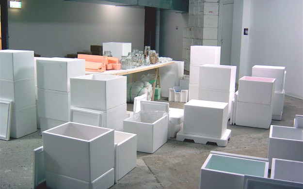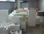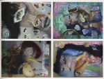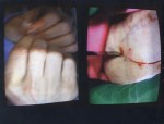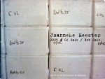 Safe / Not Safe A closed space can offer protection, but places where people are together are not automatically safe. The tension between shelter and shielding, between strength and defencelessness, is tangible in the work of Joanneke Meester (Purmerend NL, 1966). For Safe, she has made an exhibition in which the performative and vulnerable body and its environment interact with each other. A child, covered from head to toe in a knitted woollen skin-like suit, is crawling through an indefinite space. On all fours, it moves along walls, nestles in a corner, and then crawls on. Faceless creatures slowly and cautiously exploring their surroundings also occur in other video works made by Joanneke Meester over the past few years. Doll-like, beast-like or child-like, sometimes with an artificial appearance, sometimes like characters that are damaged in some way or another, they venture out, somewhere. There is no question of a goal or a clearly defined action. These are groping explorations of deserted places, searches without direction, for traces, openings, possibilities. Back to a simplified state of being, in which the body is seeking a relationship with it surroundings. This calls for movements and questions from this body, in a language that has gradually worn away from our minds. For the exhibition in Safe, Meester shows us a series of dolls. ‘Series’ is not really the right word, there are too many dolls to be able to survey them all; it looks more like a random selection from a continuous production. We see small indefinable, foetus-like creatures that seem to be ‘breathing’ although they are in formalin in sealed, transparent bags. They bring to mind the little floppy rag dolls of small children, but you are soon confronted with the skin: the nipples that form the eyes and the sewn-up mouths keep us compellingly at arm’s length. The habitat of formalin in plastic would seem to refer to the laboratory, to science, to the makability of man and the ‘product foetus’, although there are plenty of signs of an earlier life, referring to anything but a clinical environment. Their postures express innocence and a yearning for security. They are isolated from their surroundings, but are showing their nudity. We can see traces of life, of things that could have happened to them. They appear to be unborn still, but at the same time fully grown, with everything behind them. Perhaps they have been exposed, to both caresses and violence. Not their faces – they are usually faceless – but their forms, their limbs, their skin, express all manner of things. There is an (equally incomplete) series of photo collages in which Meester is literally embroidering the dolls. The sometimes abstract close-ups have been embellished and mutilated by means of holes, colourful threads, rubber stamps, hair, pieces of rope, elastic bands, sticky tape, stickers, etc. Eyes, mouths, breasts and hands have been added to the formless or pluriform bodies that we cannot get a grip on. They have acquired something expressive and provocative, they are cheeky, cruel and touching all at the same time. The sense of wildness and chaos that these images convey is in sharp contrast to the small, still bodies in the water bags, but the collages express an essential aspect of this ‘artificial life’: the resistance to completion, perfection. They make a mockery of beauty, of the controllable. As if the dolls that had initially meekly submitted to their creation in the tender purposeful hands of the maker, were now trying to flee from those same hands, to start a life of their own. Meester sets them free, they can go their own way. The power that we have over a doll, to pick it up, caress it or crush it, and the control that the artist has over the images created, as opposed to the dolls’ and the images’ own lives – these are the boundaries that Meester is exploring. She shows us a process, the process of ‘production’ rather than that of the completed image. Sometimes you see no more than a small lump covered with skin and hair that is braided as finely as possible. A strangely incomplete little ‘thing’, which at the same time betrays the greatest care for such details as a lock of hair. Here, too, it is about the ambiguous question of who is actually responsible for this ‘life’, the maker or the doll. A skin-covered Barbie-doll is spinning round on a turntable. Eventually her skin will perish, the pregnant smell around her is reminiscent of death and decay. The plastic underneath will survive. In a video, we see a model in close-up. The model is revolving before our eyes; we are circling around her. The hideousness of her skin intermingles with the elegance of her posture. In this case, too, we can feel a complex tension between what is transient and what is lasting, between naked vulnerability and strength. The relative defencelessness of the ‘dolls’ with their damaged skin and man-made forms, turns into a chaotic, colourful and dramatic protest against this forming, against the forced perfection, the physical abuse. It ends up in a cultivation of the distortion, in the celebration of uncontrollability. In the installation of Meester’s work, there is no time lapse, no before or after: we are presented with moments within a process, as aspects of identity and form(ing), and all these stratifications are being shown in their simultaneity. The huge quantities suggest mass production, while each individual object is unique. As if we found ourselves in the underground factory of the ‘creator’. SAFE has its origins in an ‘atom-bomb-proof’ underground shelter. A place that evokes all kinds of associations, but in particular refers to a past future time. Cold-war tension has become a memory or fiction; its practice we remember from films. We are thinking about a place where we should be safe, protected from a specific, damaging influence from outside. Meester demonstrates that this sort of
