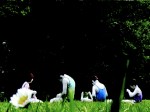 W139 – press release Transfiction voorzaal + achterzaal 24 may – 22 june 2003 Joanneke Meester, Raymond Taudin Chabot, Jan Van Imschoot Transfiction – a triplet is the final show in the series of single, double and triple solo exhibitions that mark the end of W139’s first 24 years in its remarkable premises on the Warmoesstraat. The building will be vacated after the summer for extensive renovations. On show at Transfiction are new video works by Dutch debutants Joanneke Meester and Raymond Taudin Chabot, as well as a collection of murals painted by the Belgian artist Jan van Imschoot. The exhibition’s name can be taken as an allusion to the literary phrase ‘faction’. In this genre, journalistic or novelistic texts mix a heady brew of fact and fiction, with all the consequent uncertainty on the part of the reader as to what is real and what is invention. As indicated by the neologism ‘transfiction’, the participating artists choose to go beyond the confines of both the faithful representation of reality and its visual fictionalisation. The works, on show for the first time in the current exhibition, move freely between categories. Though diverse in nature, they share a strong pictorial sensibility and a common interest in visual stabilisation and the image per se. After years of collaborating in the Patchwork artist’s collective, which dedicated itself primarily to realising large-scale works in the public space, Joanneke Meester now focuses on the development of personal, autonomous work. Meester – who has recently enrolled in the Sandberg Institute in Amsterdam – is currently working on a series of intimate video portraits that use a semi-abstract language to deal with themes such as limitation and domination, oppression and security. The ‘actors’ in Meester’s digital tableaux vivants are partially ‘dehumanised’, to the extent that they become akin to life-size puppets. The custom-made bodysuits worn by the actors add to the effect of alienation and wonder which imbues these works. Raymond Taudin Chabot, a former student of the Rietveld Academy’s audiovisual department, has distinguished himself with a striking series of portraits of Japanese businessmen, whose well-tailored appearance is in stark contrast with their submissive and painfully vulnerable posturing. By depicting them in singularly peculiar poses, the photographer has managed to undermine the businessmen’s position of professional power as signified by their attire’s symbolic attributes. Taudin Chabot’s first full-fledged video work, which he has completed over the past month, is characterized by the same rich ambiguity. The figures appear and disappear, seemingly trapped within their bodies, exuding a sense of discomfort and constraint which transmits itself to the viewer. While the work of Jan van Imschoot initially appears to be of a completely different nature, it shares the ambiguity of the above pieces. Much like the official war artists who are still dispatched to near and distant battlefields by the British Imperial War Museum (as described in a recent article in the Dutch Volkskrant’s art supplement), Van Imschoot draws his inspiration from images of recent military invasions and historical campaigns of conquest. Van Imschoot, however, does not assume the role of eyewitness, on-the-spot reporter of the atrocities of war, or artistic-political critic of the home front. In the words of the curator Vasif Kortun, the artist states that “he never relied on contemporary art as a tool for directly communicating political issues. Whatever can be reduced to language is often articulated more effectively and quickly through different media”. Van Imschoot’s war paintings – inspired by both the recent events in Iraq and the Battle of Waterloo – condense harsh reality into a collection of lasting images, reminiscent of certain established iconography from art history. Van Imschoot transforms documentary or journalistic impressions of war into a fragmentary microcosm of timeless images, whose emphatic aestheticism makes them all the more disturbing. Joris Brouwers, Adam Marschall and Kaleb de Groot have transformed the space between W139’s front and back rooms, which serves as a bar during openings, into a ‘decompression chamber’. The trio have converted this transitional space into an unusual drawing room, a place where visitors can stop, relax and gather information before proceeding head-on and fully focussed into the second part of the exhibition.