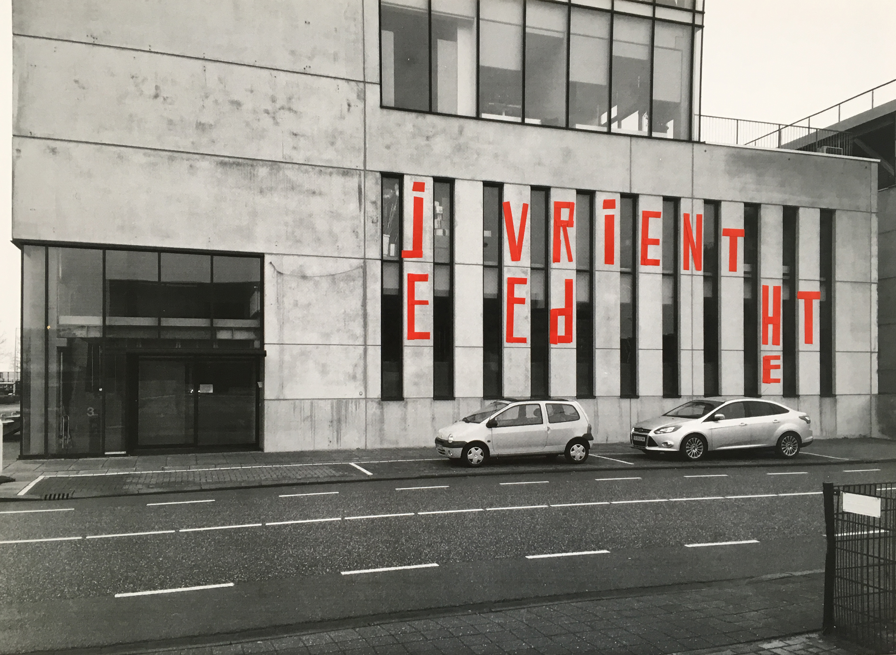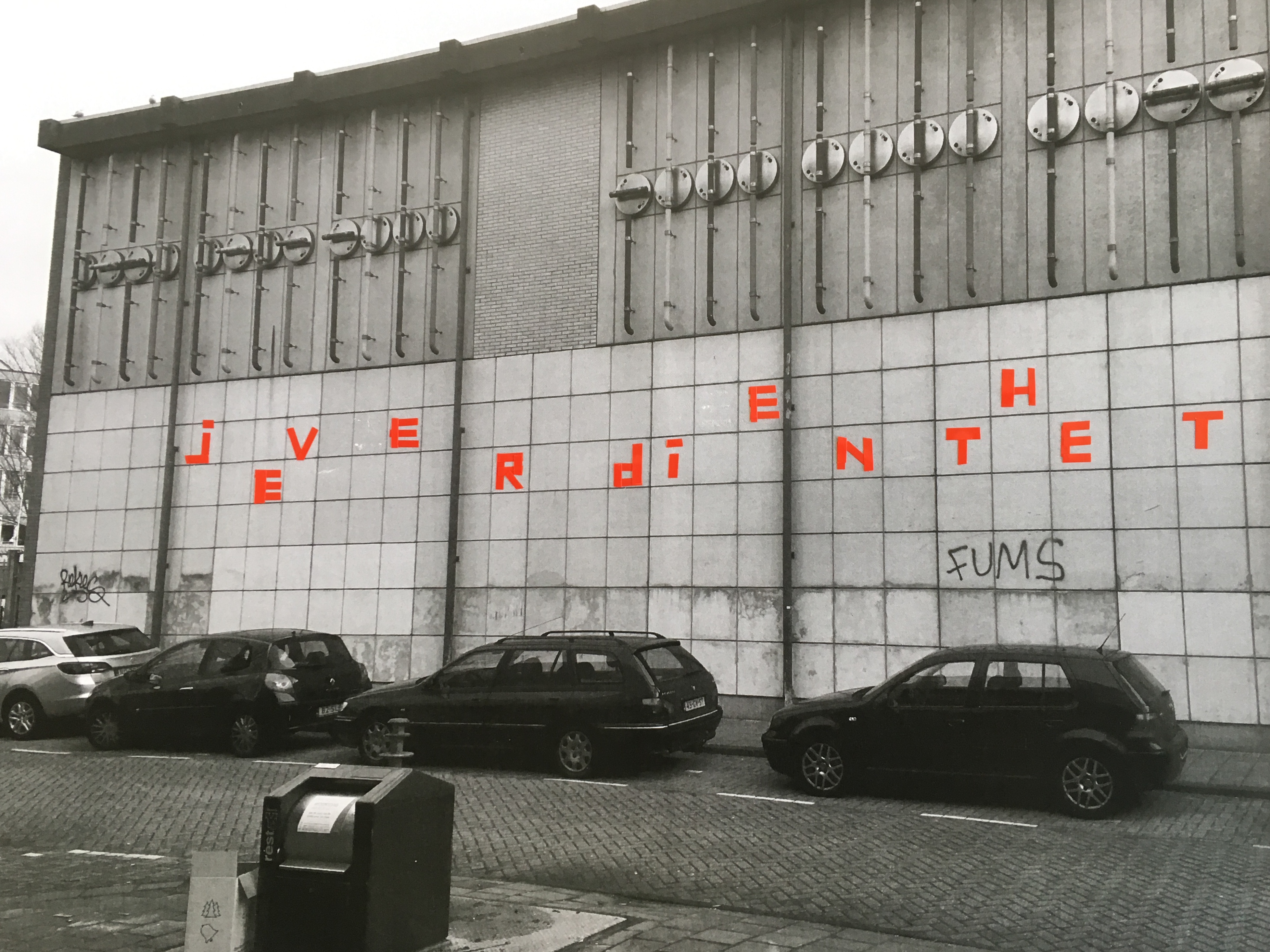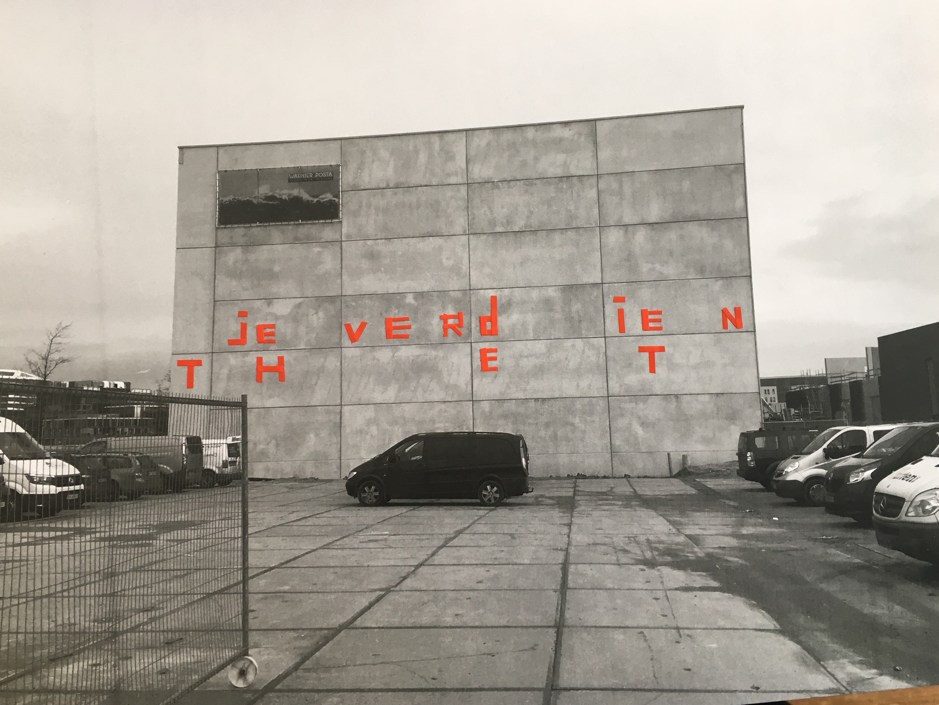 Je Verdient Het is a recurring text image of visual artist Joanneke Meester in the public space around Cargo. This new work by Meester will be tagged on various facades in the Houthaven and the Spaarndammerbuurt. Both neighborhoods are developed complementary to each other in terms of functions – living, working, shopping and doing business – by the urban planners. In the past few years, Meester acquired notoriety with her meaningful text images, of which the content gives the spectators food for thought. In and outside the Cargo project space, Benjamin Li and Marieke Zwart will react on it with a new work. Nina Glockner and Césare Pietroiusti are showing existing work.