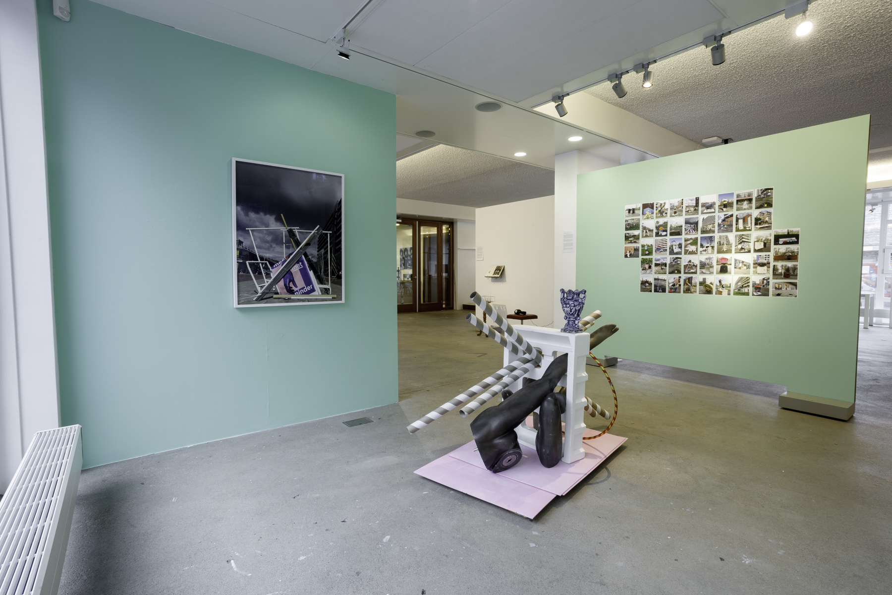 Op de achtergrond is een uitvergrote piezografie te zien met de titel ‘Meer met Minder’, samen met 48 kleinere piezografiën van tijdelijke installaties die ik tijdens mijn residentie in de openbare ruimte realiseerde.