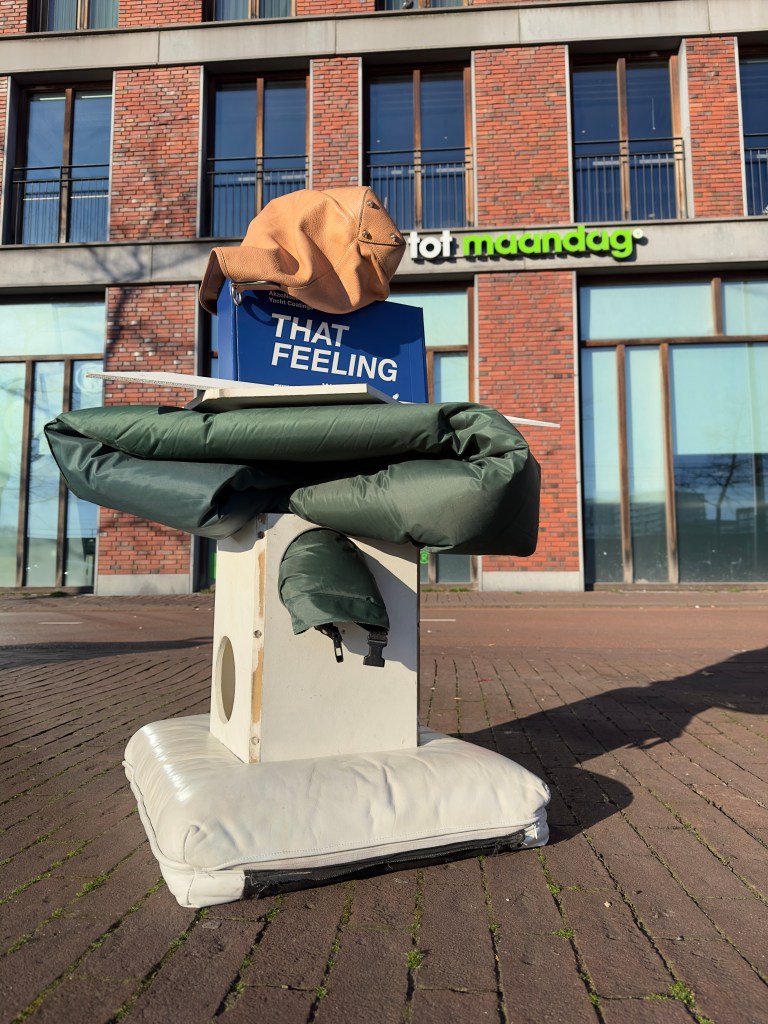 Een glimp uit de groeiende collectie assemblages van op straat gevonden spullen geplaatst op verschillende plekken in Amsterdam.