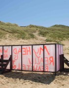For the temporary KadS manifestation, Meester has produced seven yellow traffic signs, entitled ‘Signs’. They feature inspirational and relativistic texts, Lees verder